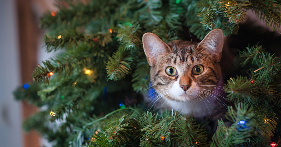 Christmas trees can be a challenge with curious cats. Our solution? The On2Pets Cat Tree. Us cats are very territorial, so once we recognize that we have a tree of our own, we forget all about your tree. It may take some training to get your pet used to their tree, so remember to keep your Christmas tree secure in an upright position with a tight-fitting tree skirt as a precaution.